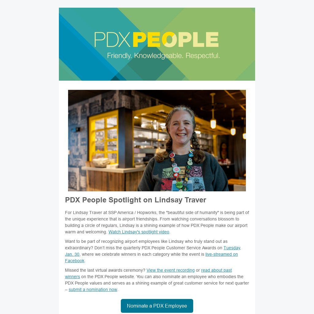 January Forum: Mark your calendars for Tuesday, Jan. 30, at 10:30 a.m. to get the inside scoop on construction at PDX. Jen Reynolds from the Port of Portland along with Pat Bifone and Bri Leiblie of Hoffman-Skanska share the latest construction updates and answer your questions about PDX Next in just 30 minutes. If you'd like to join the meeting, email PDX People Communications before Monday, Jan. 29, for the meeting link.
