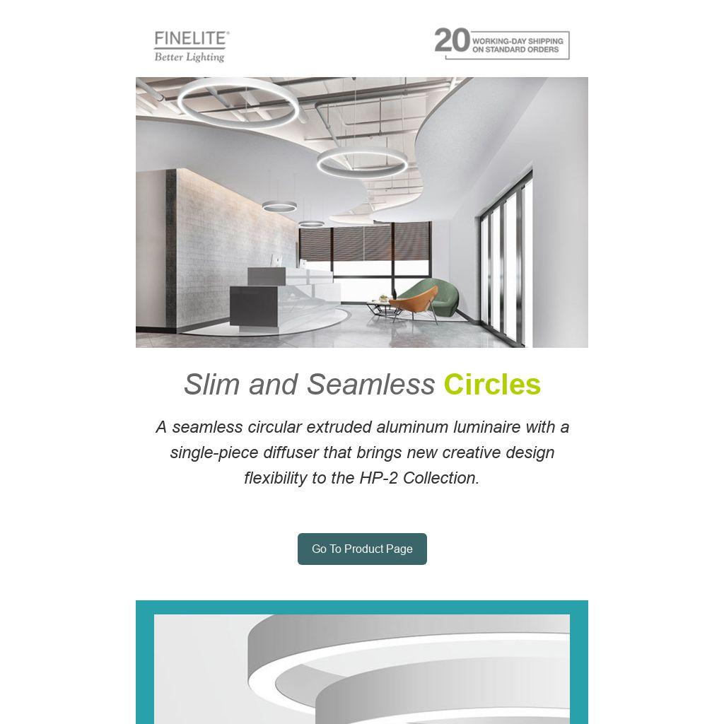 A seamless circular extruded aluminum luminaire with a single-piece diffuser that brings new creative design flexibility to the HP-2 Collection.