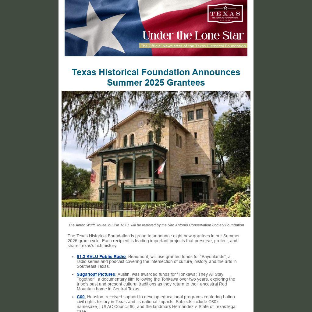 Texas Historical Foundation Announces Summer 2025 Grantees |