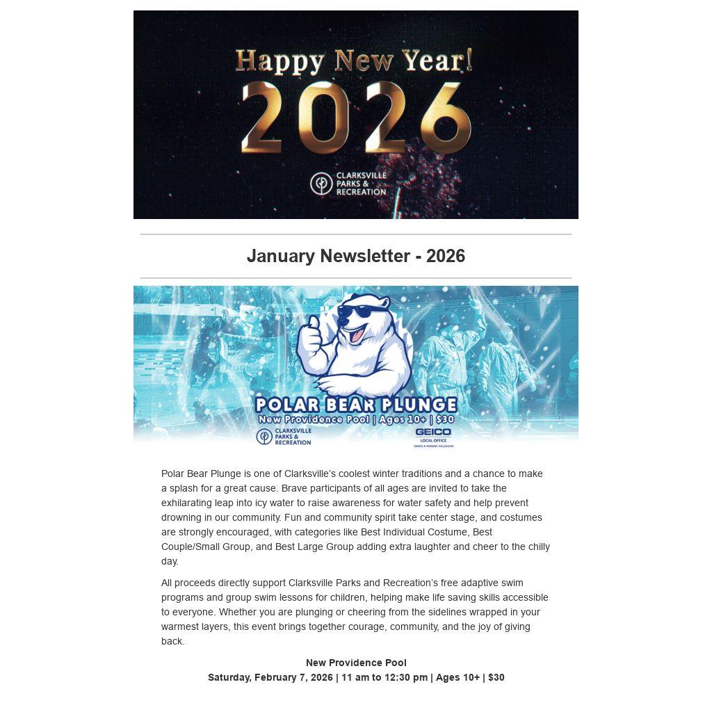 All proceeds directly support Clarksville Parks and Recreation’s free adaptive swim programs and group swim lessons for children, helping make life saving skills accessible to everyone. Whether you are plunging or cheering from the sidelines wrapped in your warmest layers, this event brings together courage, community, and the joy of giving back.