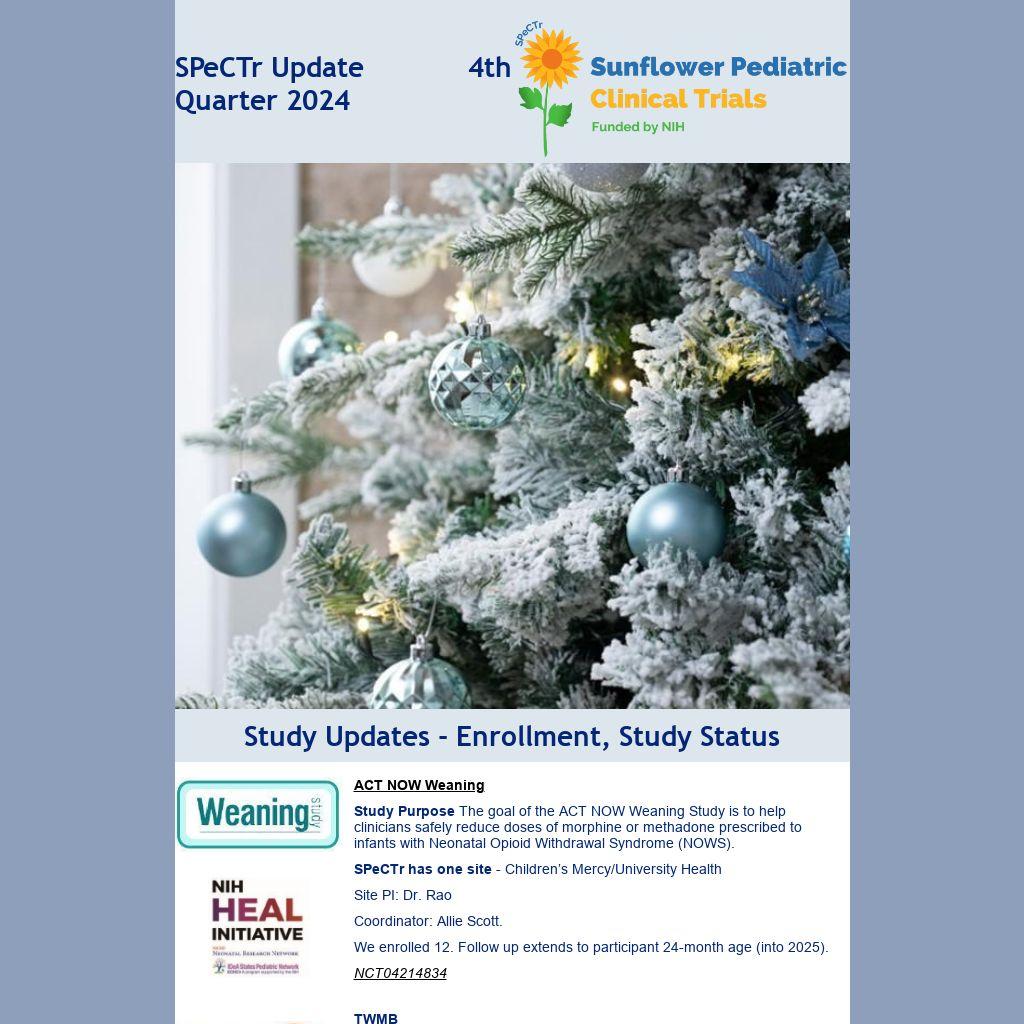 We continue to be involved in all aspects of network operations from writing groups for manuscripts to working groups thinking of new clinical trial ideas to protocol development and planning our network steering committee meetings. We have several manuscripts in various stages of preparation and submission and have submitted an abstract to PAS for potential poster or presentation next spring at the meeting in Hawaii. Stay tuned for updates on these and all things.