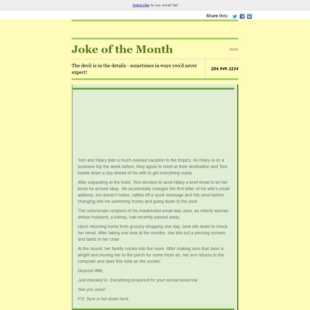 The unfortunate recipient of his misdirected email was Jane, an elderly woman whose husband, a bishop, had recently passed away.