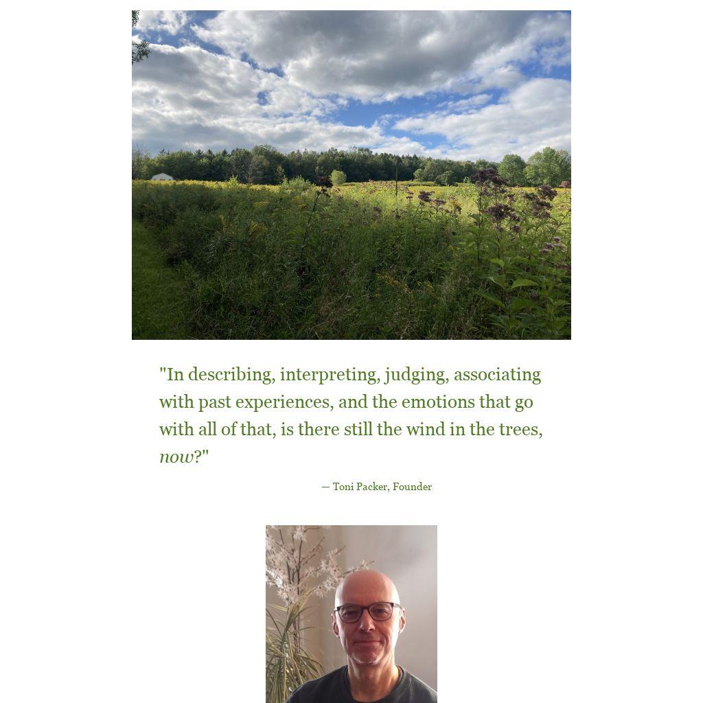 "In describing, interpreting, judging, associating with past experiences, and the emotions that go with all of that, is there still the wind in the trees, now?" — Toni Packer, Founder