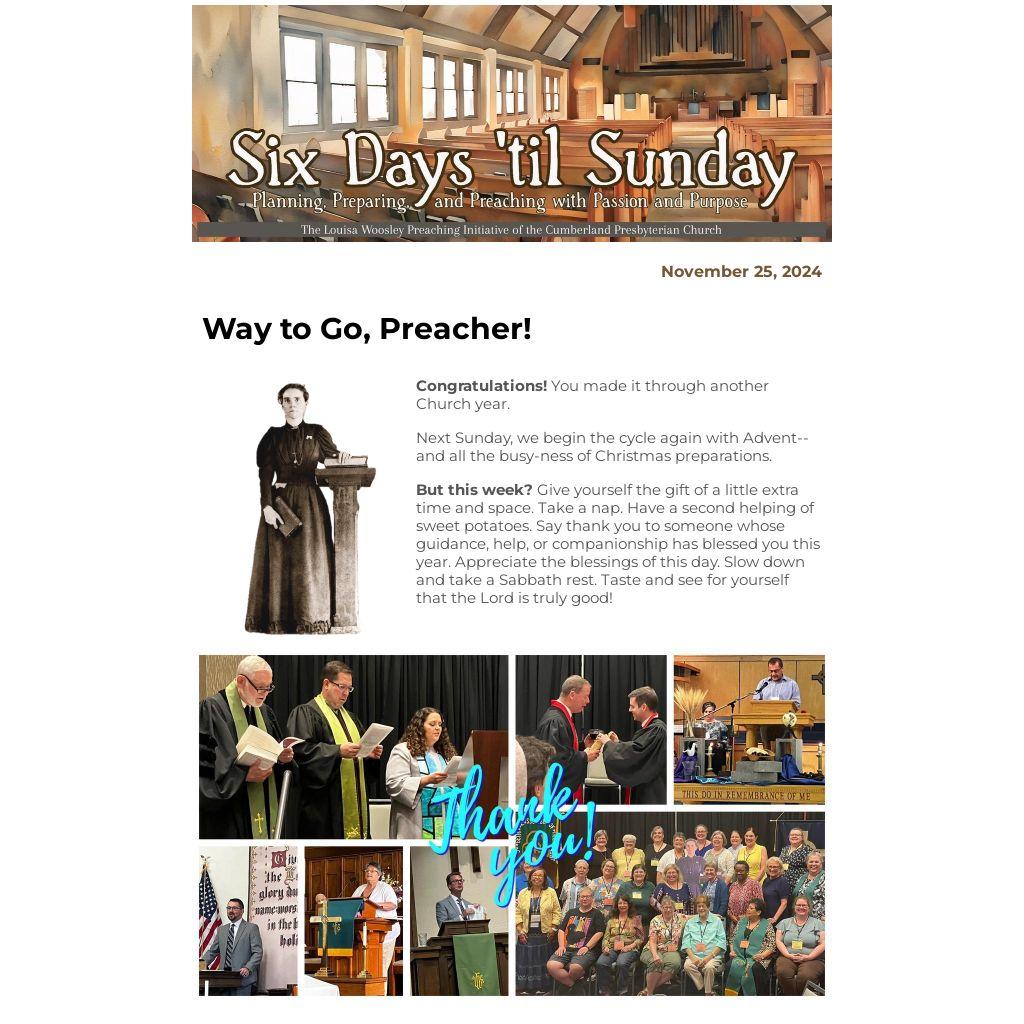 The Louisa Woosley Preaching Initiative is a grant-funded program of the Cumberland Presbyterian Church. Our goal is to equip ministers and candidates for ministry to preach compelling sermons to today's diverse and often divided world.