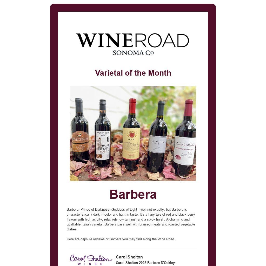 Here are capsule reviews of Barbera you may find along the Wine Road.