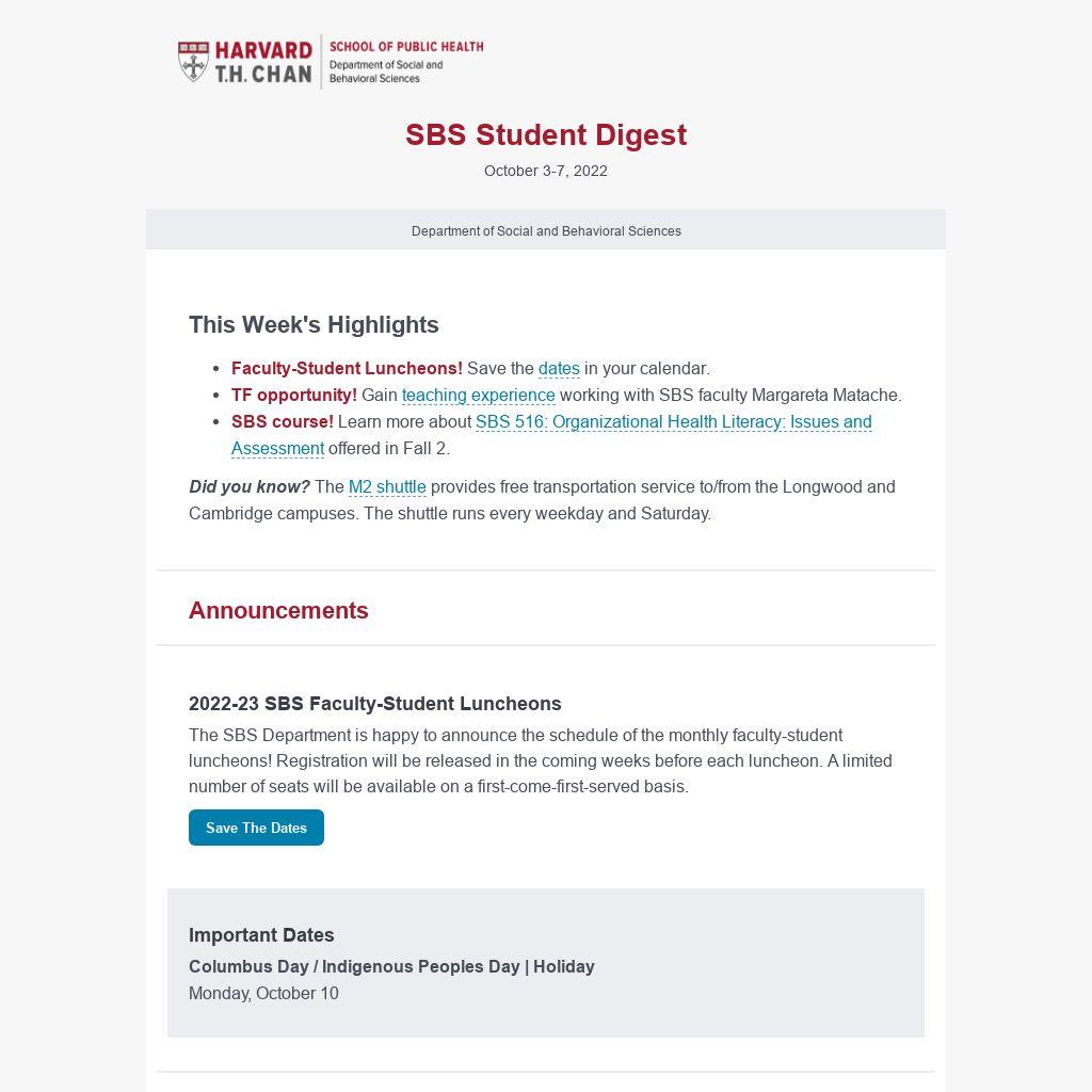The SBS Department is happy to announce the schedule of the monthly faculty-student luncheons! Registration will be released in the coming weeks before each luncheon. A limited number of seats will be available on a first-come-first-served basis.