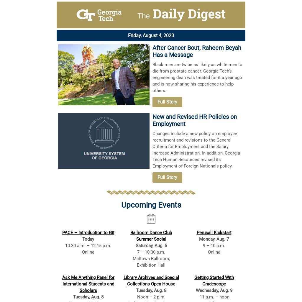 | | Changes include a new policy on employee recruitment and revisions to the General Criteria for Employment and the Salary Increase Administration. In addition, Georgia Tech Human Resources revised its Employment of Foreign Nationals policy.