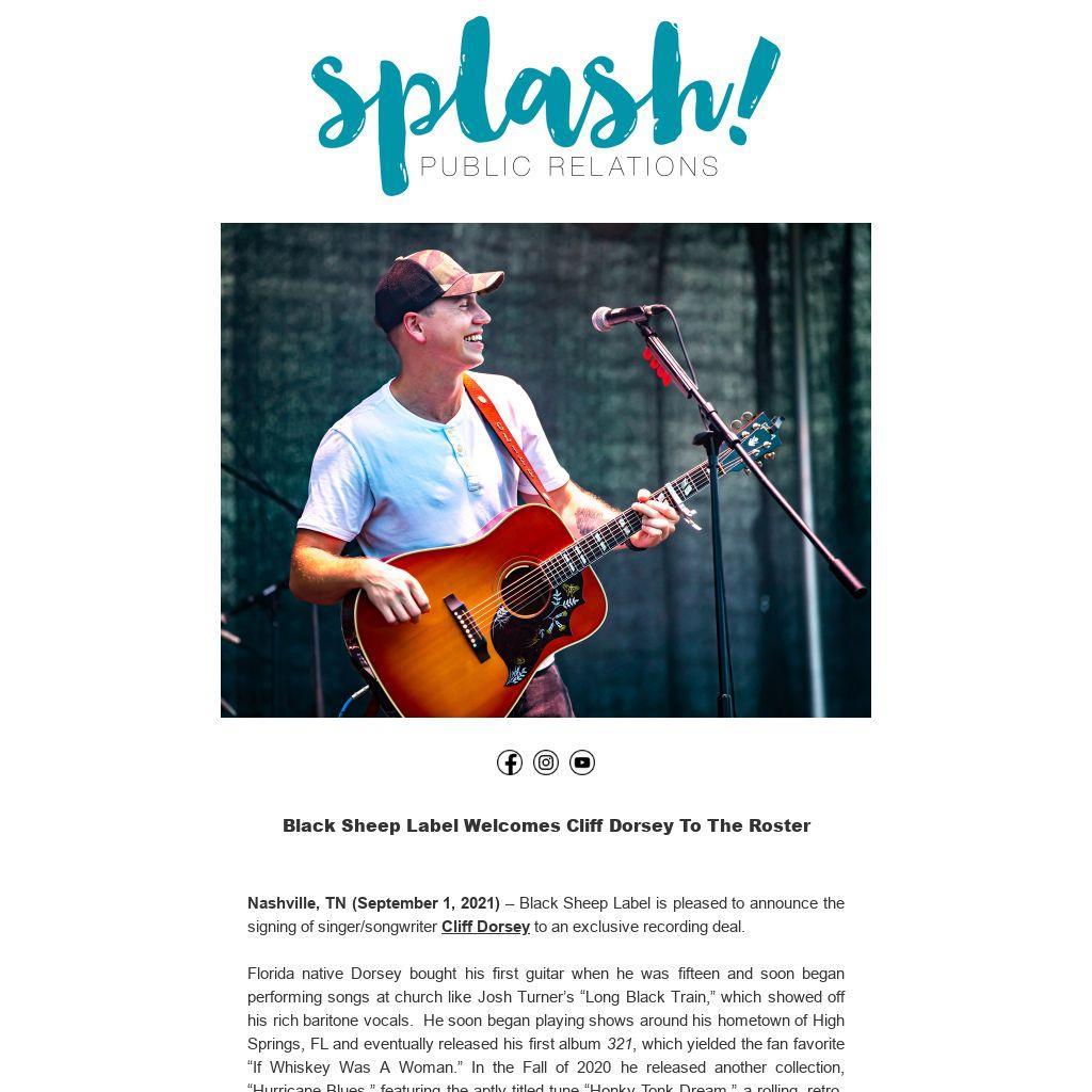 Nashville, TN (September 1, 2021) – Black Sheep Label is pleased to announce the signing of singer/songwriter Cliff Dorsey to an exclusive recording deal.
