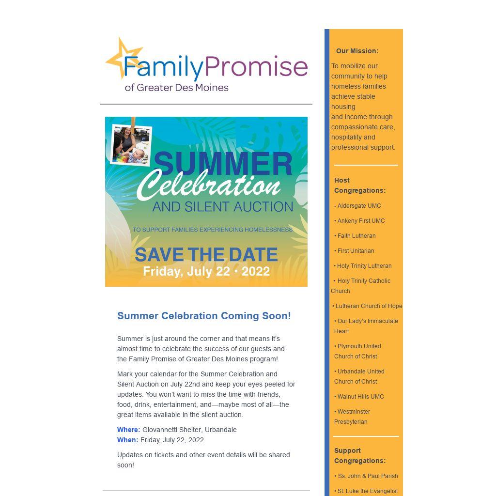 Summer is just around the corner and that means it’s almost time to celebrate the success of our guests and the Family Promise of Greater Des Moines program!