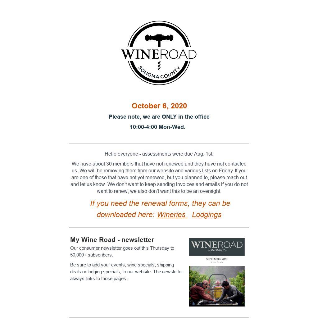 Debbie will be scheduling wineries that are interested, to record their YouTube video with her on Oct. 13,14, or 15.