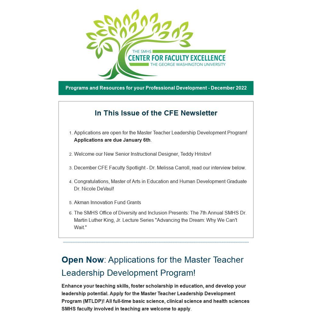 Applications will be accepted until January 6th, 2023. For more information on MTLDP, including application instructions and testimonials from graduates, visit our website: https://mtldp.smhs.gwu.edu/ and email fkrull@gwu.edu informing her of your intent to apply.