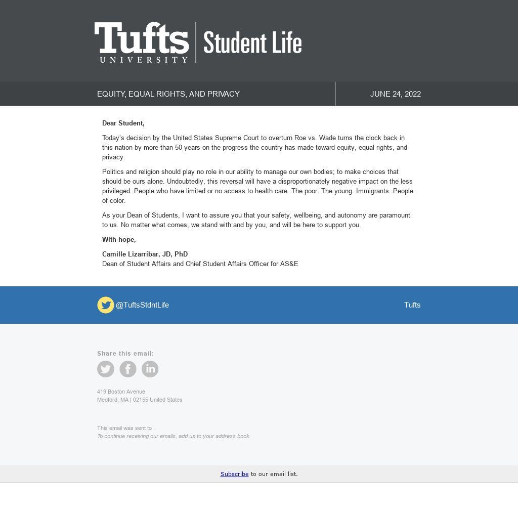 As your Dean of Students, I want to assure you that your safety, wellbeing, and autonomy are paramount to us. No matter what comes, we stand with and by you, and will be here to support you.