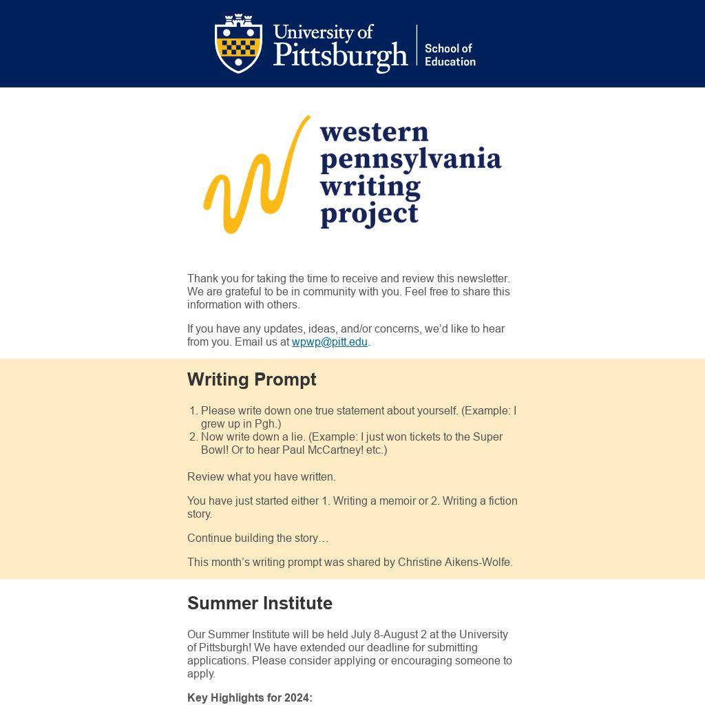 If you have any updates, ideas, and/or concerns, we’d like to hear from you. Email us at wpwp@pitt.edu.
