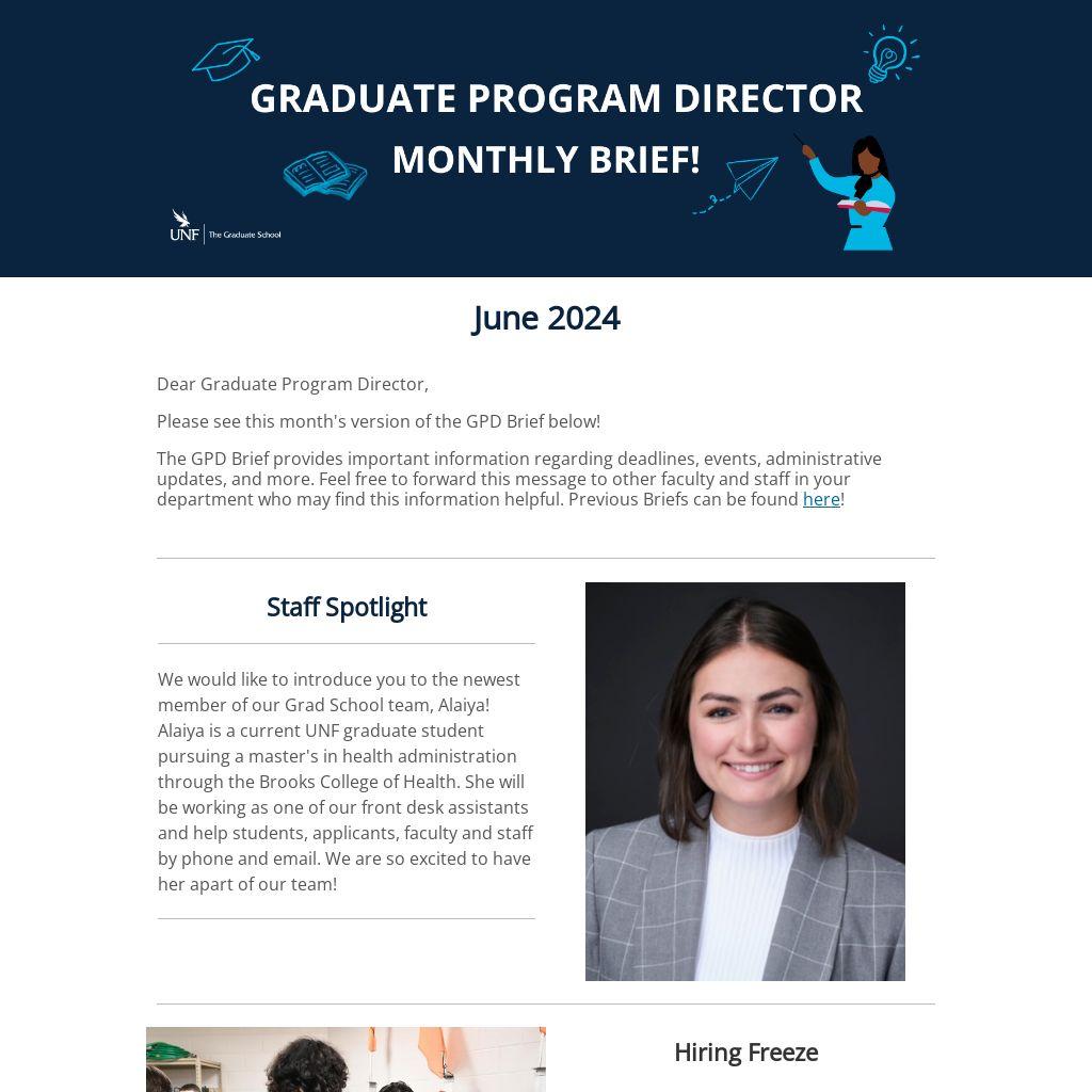 The GPD Brief provides important information regarding deadlines, events, administrative updates, and more. Feel free to forward this message to other faculty and staff in your department who may find this information helpful. Previous Briefs can be found here!