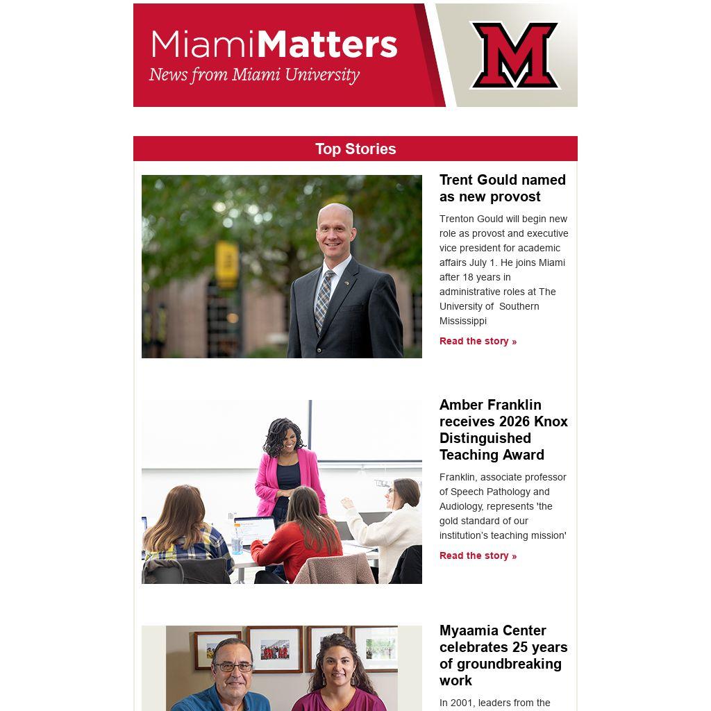 | Trenton Gould will begin new role as provost and executive vice president for academic affairs July 1. He joins Miami after 18 years in administrative roles at The University of Southern Mississippi
