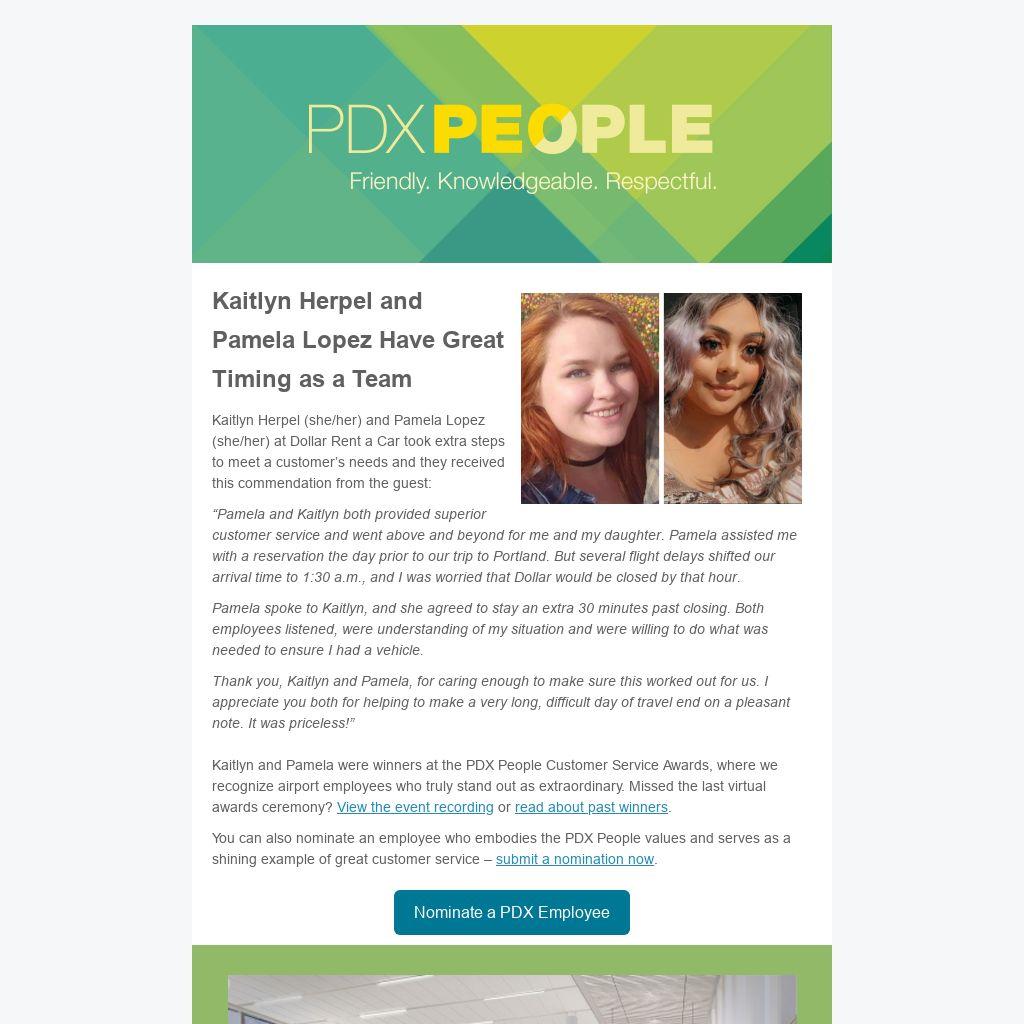You can also nominate an employee who embodies the PDX People values and serves as a shining example of great customer service – submit a nomination now.