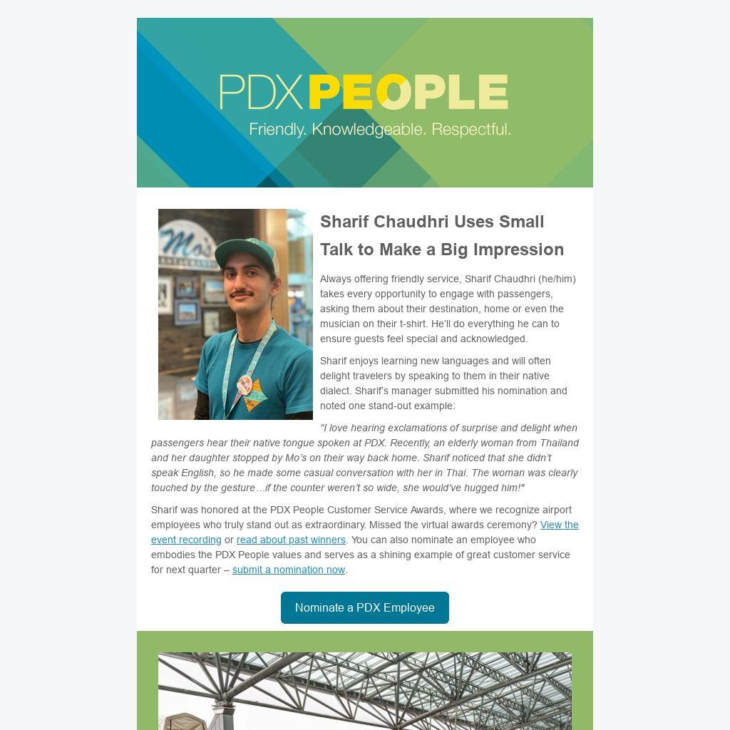 We know working through construction is challenging – that's why we're keeping you in the loop in this newsletter, on our PDX People website and on digital signage in the employee bypass areas. Help your colleagues stay in the know and encourage them to sign up for the newsletter.