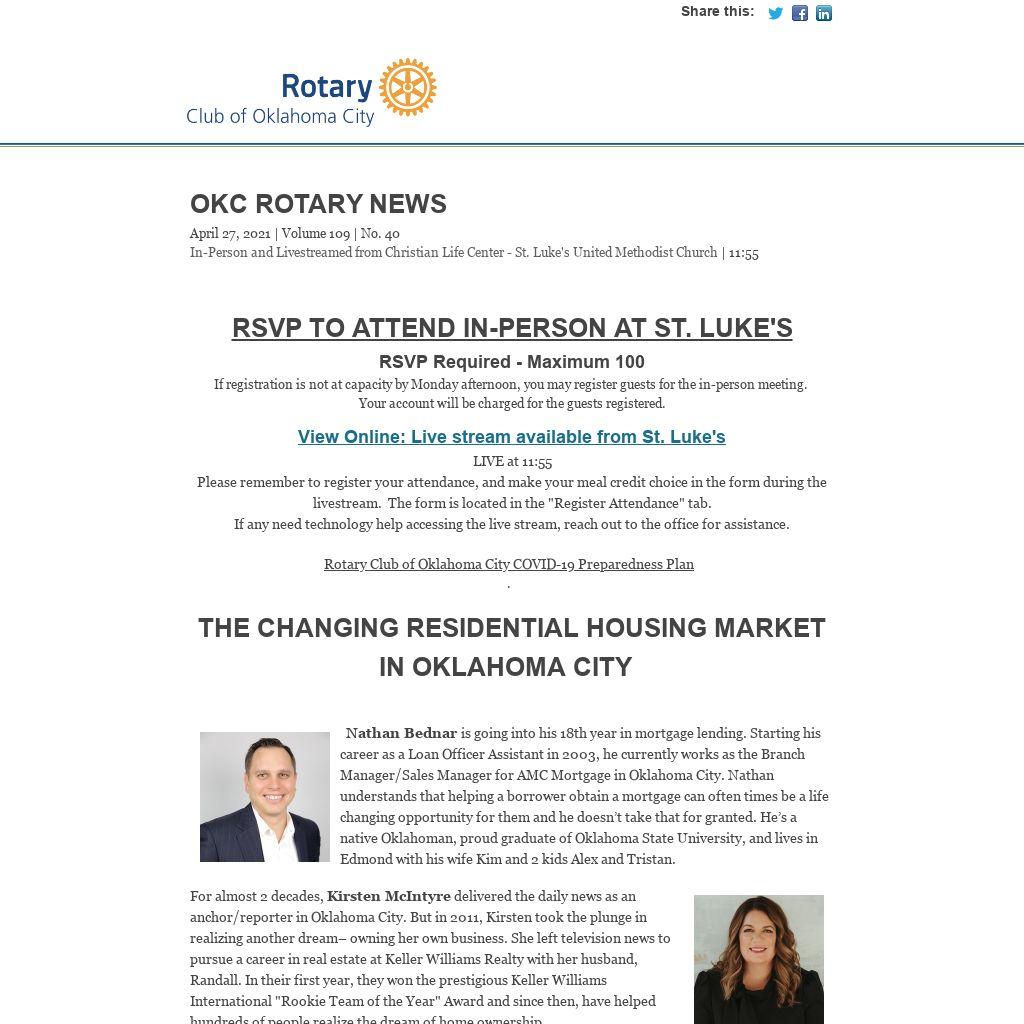 | OKC Rotary NewsApril 27, 2021 | Volume 109 | No. 40