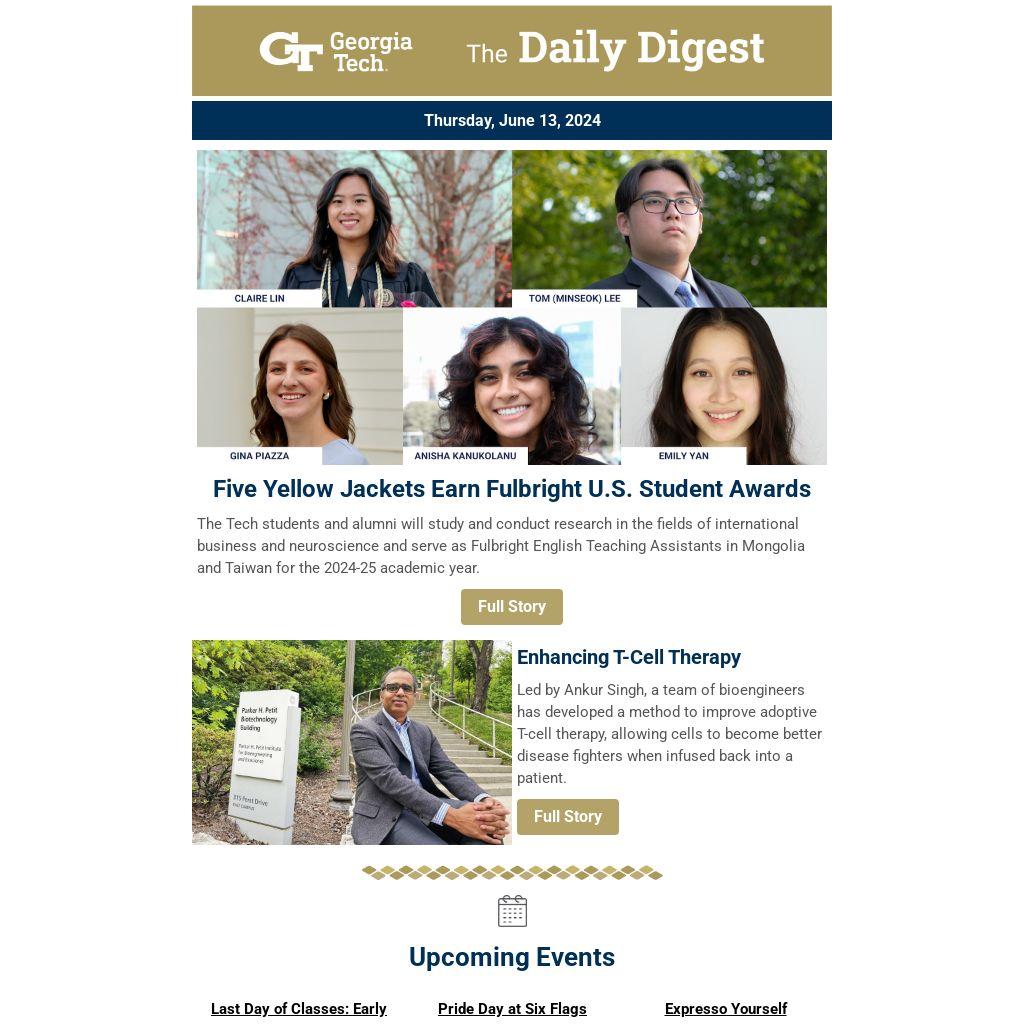 The Tech students and alumni will study and conduct research in the fields of international business and neuroscience and serve as Fulbright English Teaching Assistants in Mongolia and Taiwan for the 2024-25 academic year.