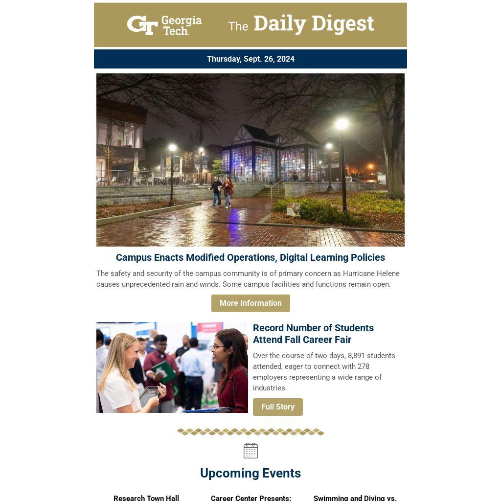 The safety and security of the campus community is of primary concern as Hurricane Helene causes unprecedented rain and winds. Some campus facilities and functions remain open.