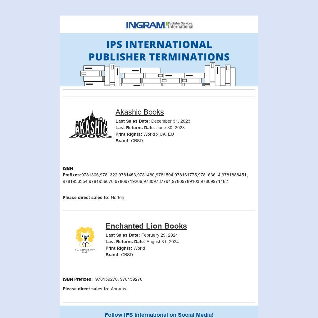 Akashic Books Last Sales Date: December 31, 2023 Last Returns Date: June 30, 2023 Print Rights: World x UK, EU Brand: CBSD