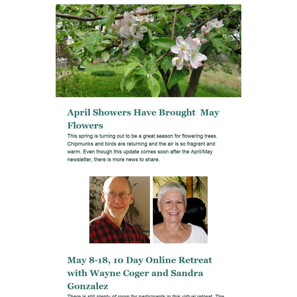 We invite you to take advantage of the timed sittings that are available daily (except Mondays) and the weekly Saturday schedule of timed sitting followed by a recorded Toni Packer talk and group dialogue. These take place when the Center is not holding an online retreat or All Day Sitting. The schedule is as follows (All times are Eastern Time):