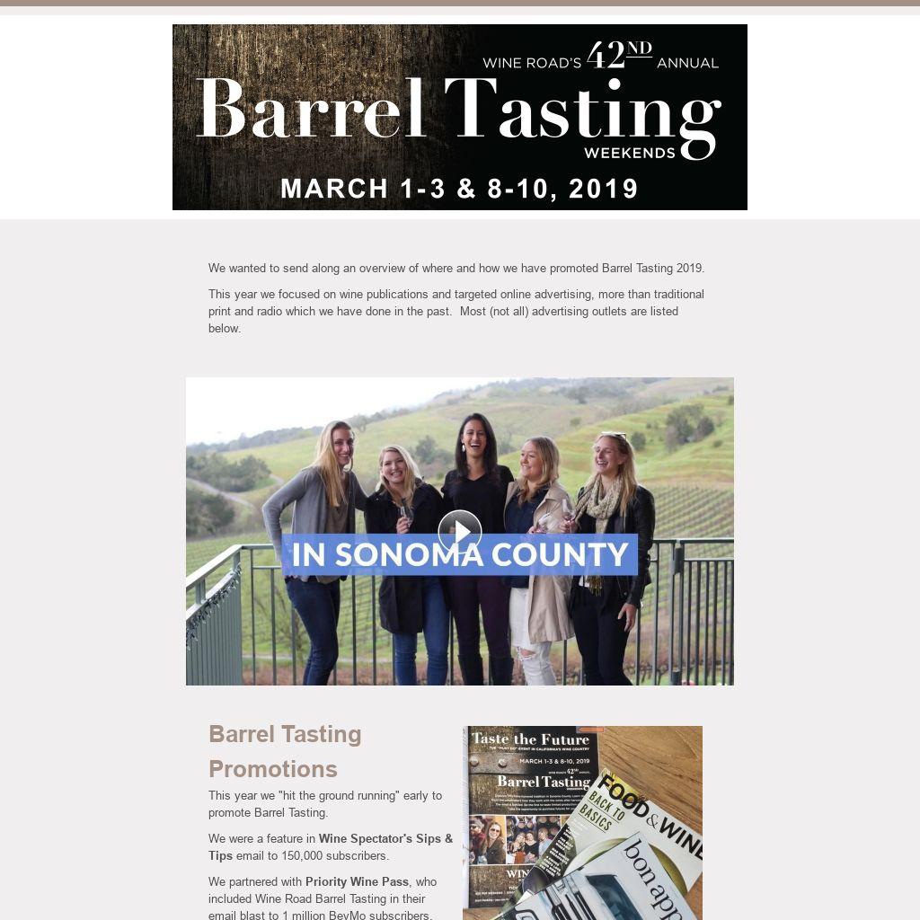 We partnered with Priority Wine Pass, who included Wine Road Barrel Tasting in their email blast to 1 million BevMo subscribers.