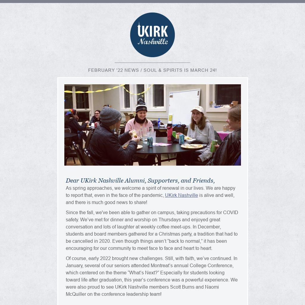 Through UKirk Nashville, students experience the love of God through worship, fellowship, and service. We are meeting students where they are and as they are—amidst the busy-ness and uncertainty of college and young adulthood, with their questions, their faith, and their doubt.