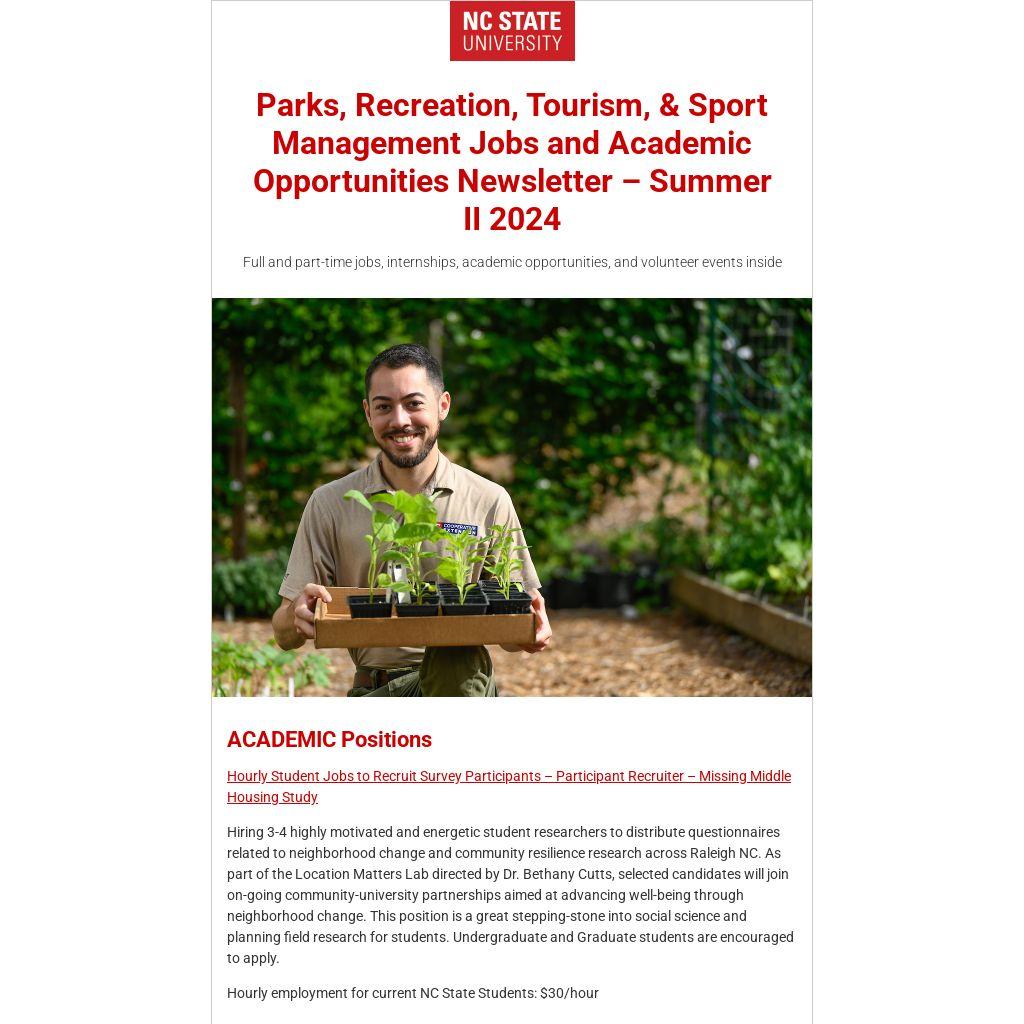 Parks, Recreation, Tourism, & Sport Management Jobs and Academic Opportunities Newsletter – Summer II 2024