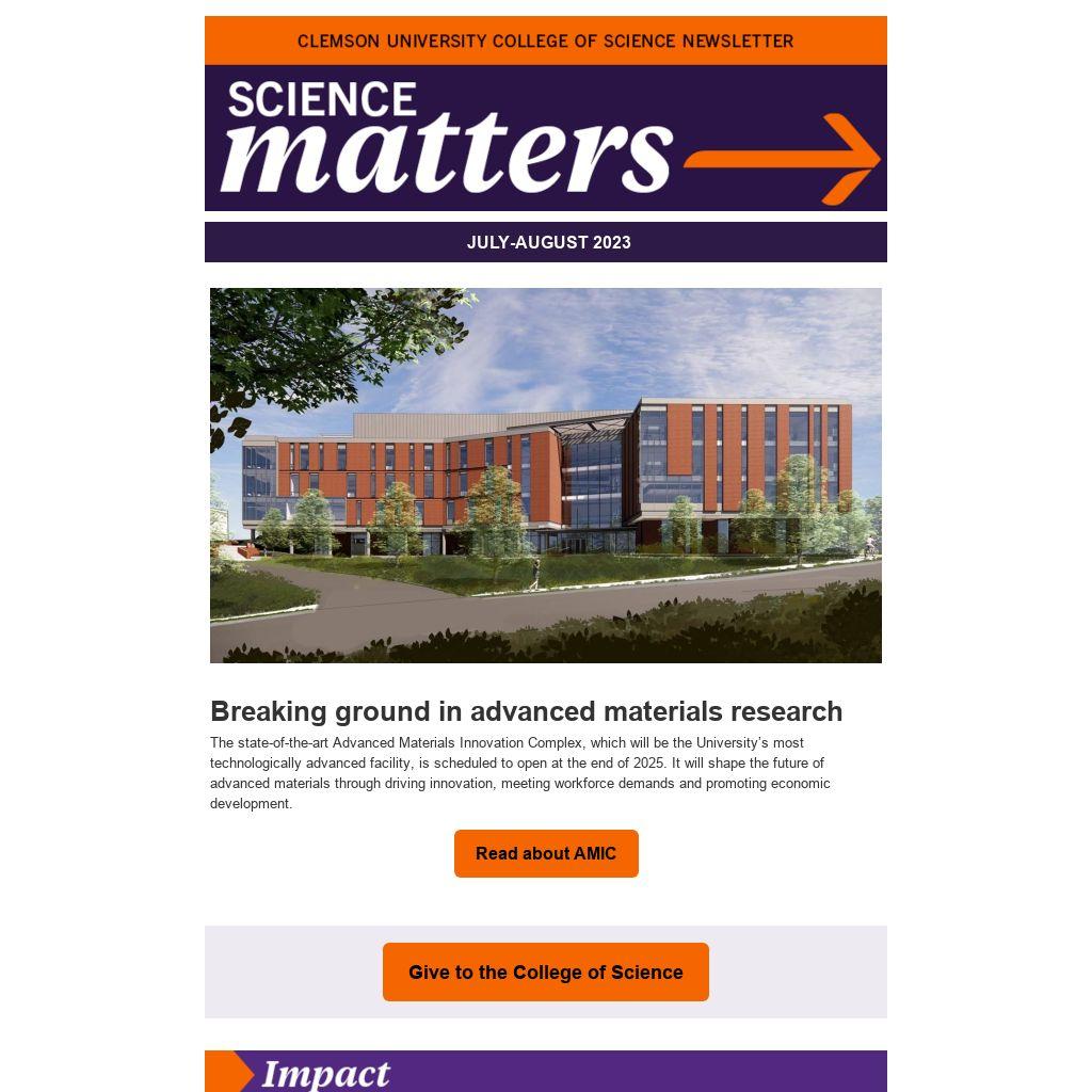 Let us know what you’re doing. Share your professional accomplishments with the College of Science and your news may be featured on our website or in this newsletter.