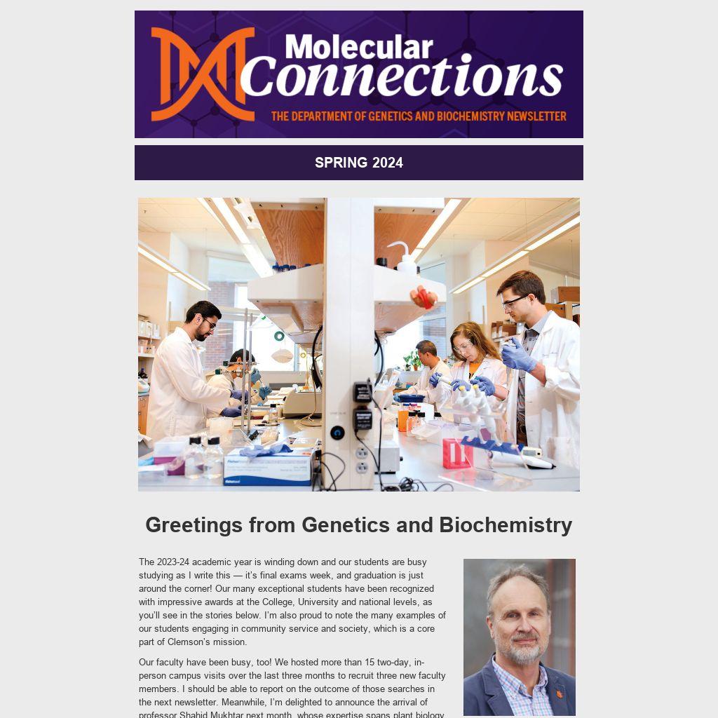The 2023-24 academic year is winding down and our students are busy studying as I write this — it’s final exams week, and graduation is just around the corner! Our many exceptional students have been recognized with impressive awards at the College, University and national levels, as you’ll see in the stories below. I’m also proud to note the many examples of our students engaging in community service and society, which is a core part of Clemson’s mission.