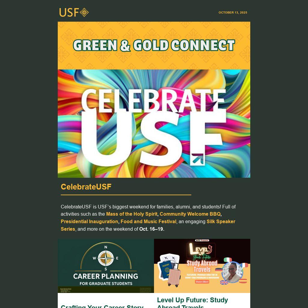 Celebrated yearly at Jesuit educational institutions worldwide, this tradition marks the beginning of the new academic year. This year, at USF, it will also celebrate the inauguration of President Salvador D. Aceves ’83, EdD ’95. Following the Mass, continue the celebration at a community barbecue on Welch Field.