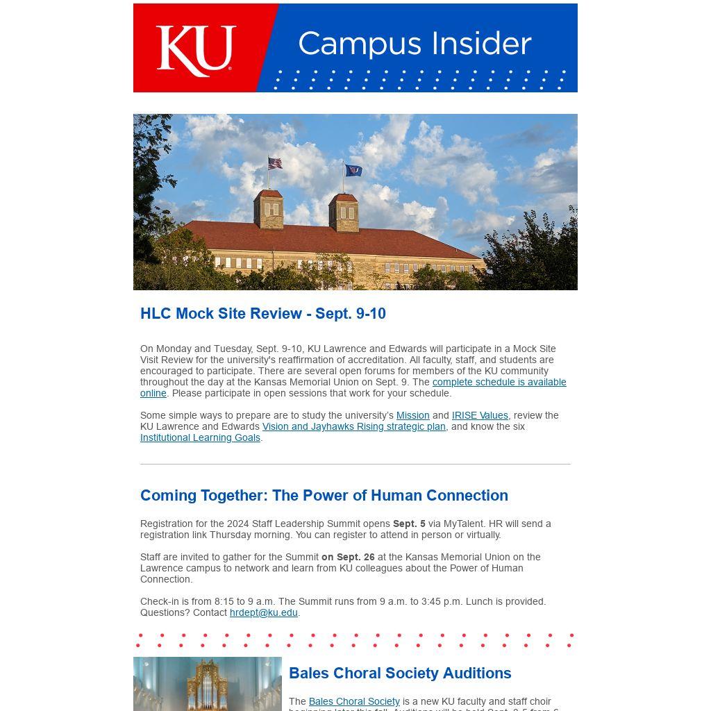Staff are invited to gather for the Summit on Sept. 26 at the Kansas Memorial Union on the Lawrence campus to network and learn from KU colleagues about the Power of Human Connection.