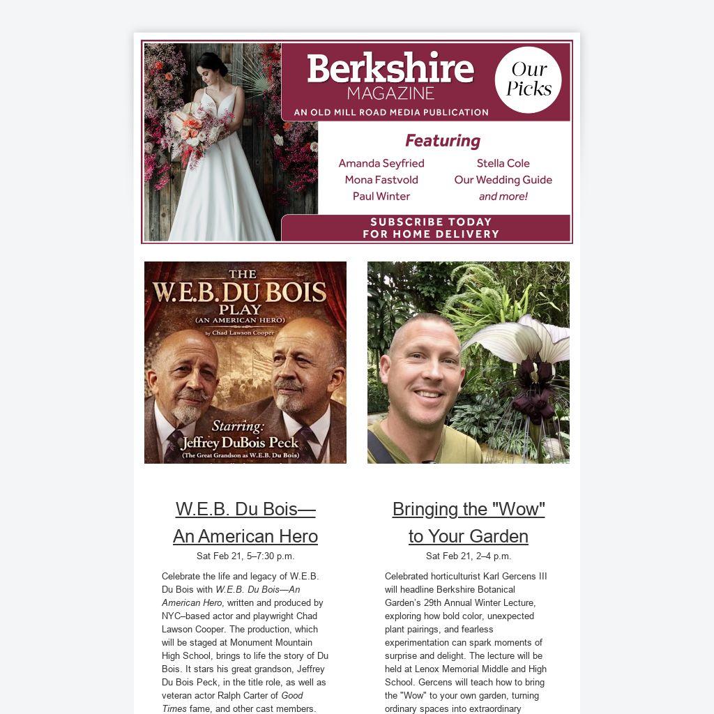 Celebrated horticulturist Karl Gercens III will headline Berkshire Botanical Garden’s 29th Annual Winter Lecture, exploring how bold color, unexpected plant pairings, and fearless experimentation can spark moments of surprise and delight. The lecture will be held at Lenox Memorial Middle and High School. Gercens will teach how to bring the "Wow" to your own garden, turning ordinary spaces into extraordinary experiences. More info