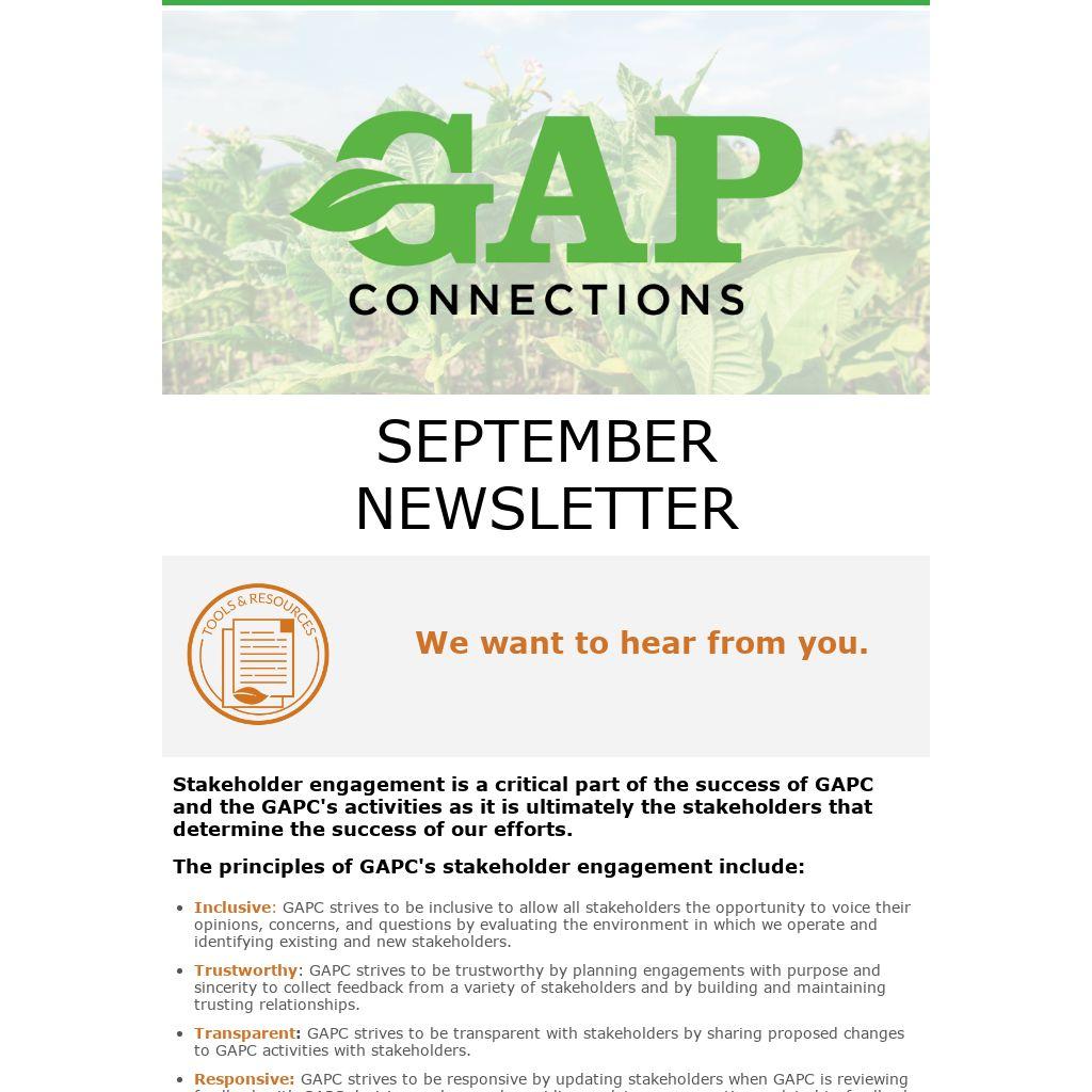 - Transparent: GAPC strives to be transparent with stakeholders by sharing proposed changes to GAPC activities with stakeholders.