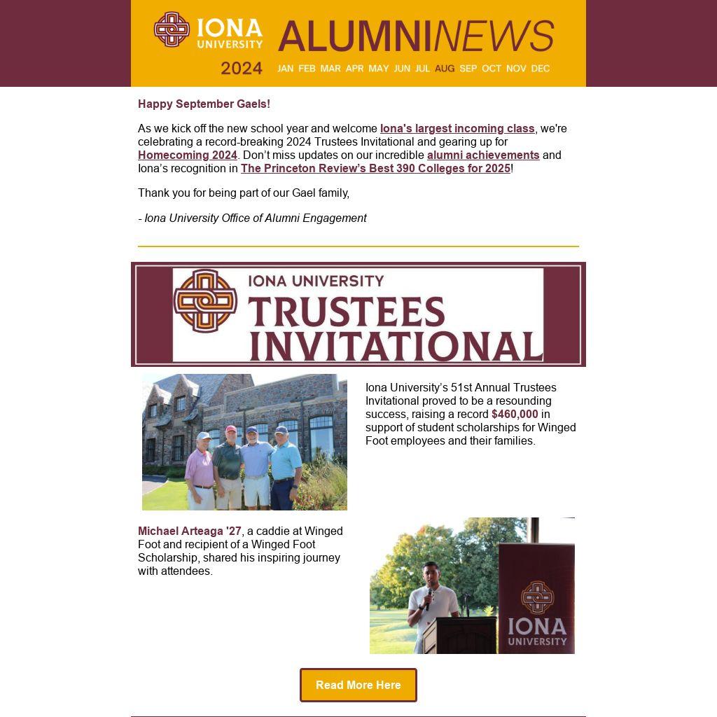 | Iona University’s 51st Annual Trustees Invitational proved to be a resounding success, raising a record $460,000 in support of student scholarships for Winged Foot employees and their families.