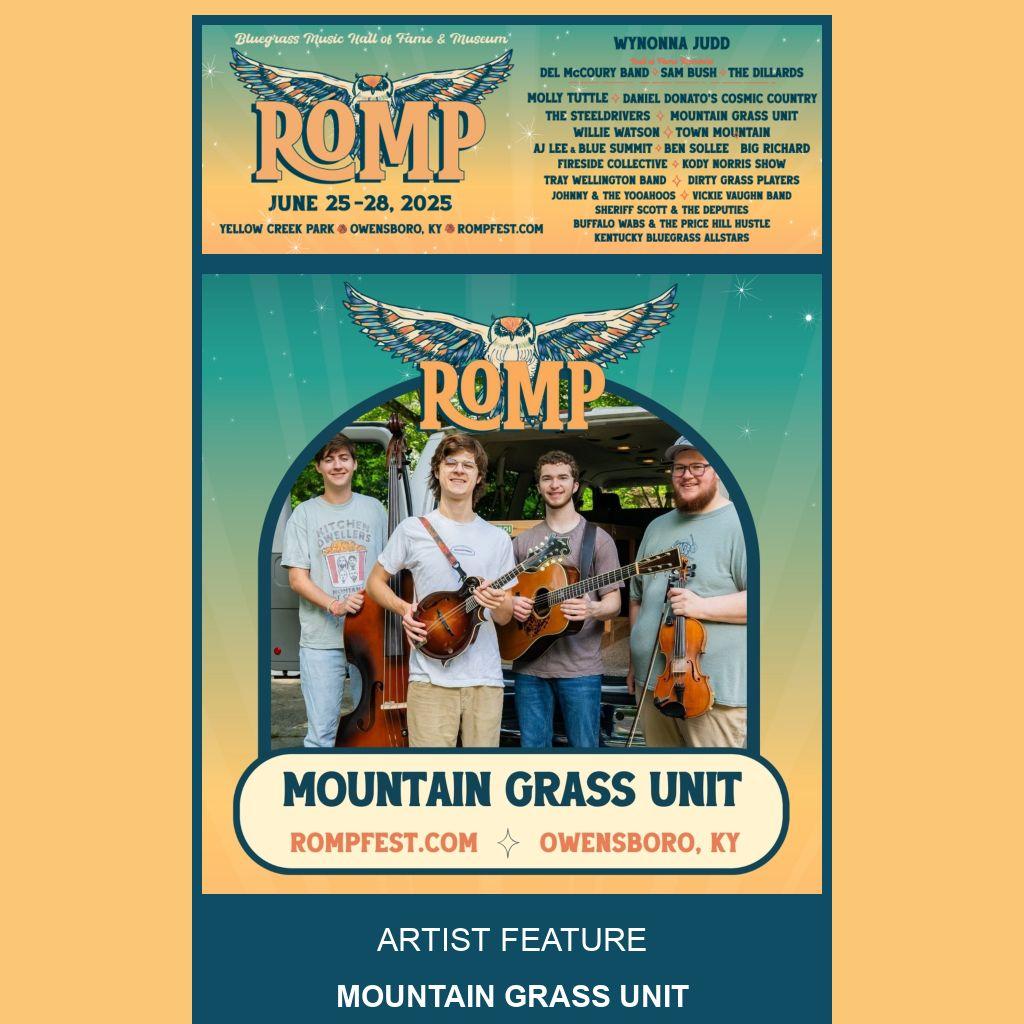 Recorded at Nashville’s Hartland Studios, and produced by Mike Harris (Old Crow Medicine Show), the EP captures their live energy. The leading single, “Hey Mama,” explores life's transitions with inquisitive lyrics, while “Cicada Song” and “Smugglin’” highlight their funk and traditional sides. 2024 marked a turning point with performances at Renewal, DelFest and WinterWondergrass, broadening their audience and deepening their musical exploration. With plans for extensive touring, festival sets, and new music, Mountain Grass Unit is ready to share their luminous sound with the world, each performance a new chapter in their unfolding story.