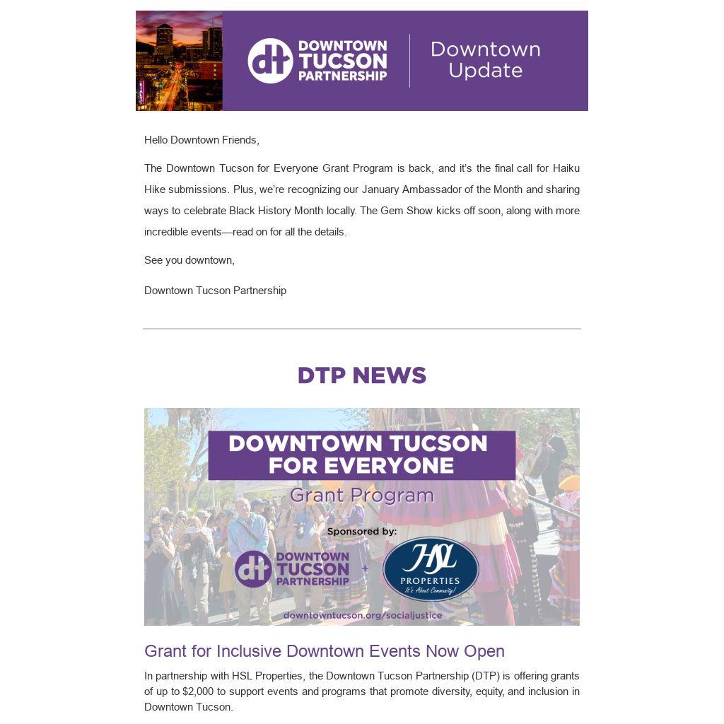 In partnership with HSL Properties, the Downtown Tucson Partnership (DTP) is offering grants of up to $2,000 to support events and programs that promote diversity, equity, and inclusion in Downtown Tucson.