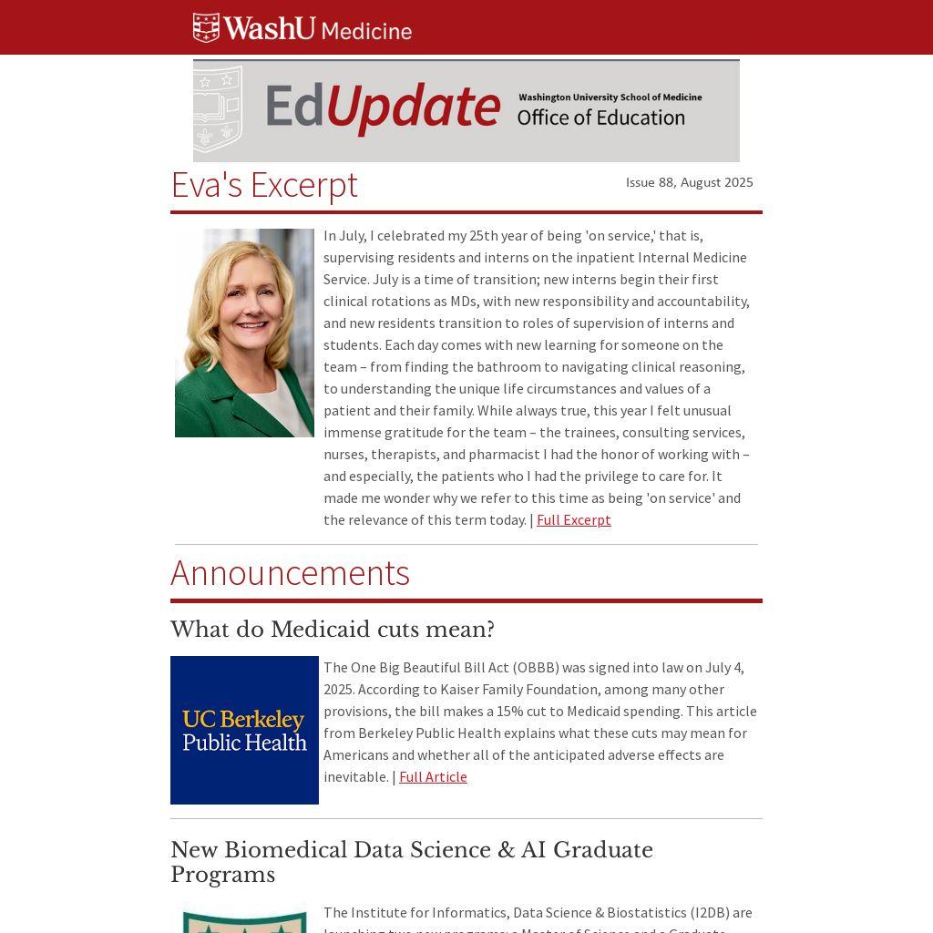 In July, I celebrated my 25th year of being 'on service,' that is, supervising residents and interns on the inpatient Internal Medicine Service. July is a time of transition; new interns begin their first clinical rotations as MDs, with new responsibility and accountability, and new residents transition to roles of supervision of interns and students. Each day comes with new learning for someone on the team – from finding the bathroom to navigating clinical reasoning, to understanding the unique life circumstances and values of a patient and their family. While always true, this year I felt unusual immense gratitude for the team – the trainees, consulting services, nurses, therapists, and pharmacist I had the honor of working with – and especially, the patients who I had the privilege to care for. It made me wonder why we refer to this time as being 'on service' and the relevance of this term today. | Full Excerpt