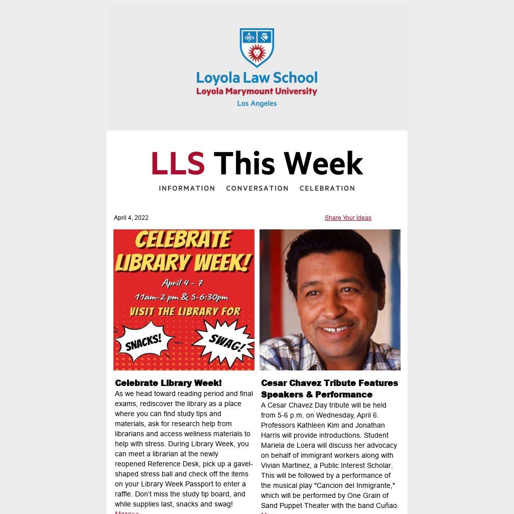 Event coordinators are encouraged to use the LLS Events Calendar for events they want promoted broadly. Note: You must select "Loyola Law School" in the department field in order for the event to display in the LLS roundup. Questions? Email us!