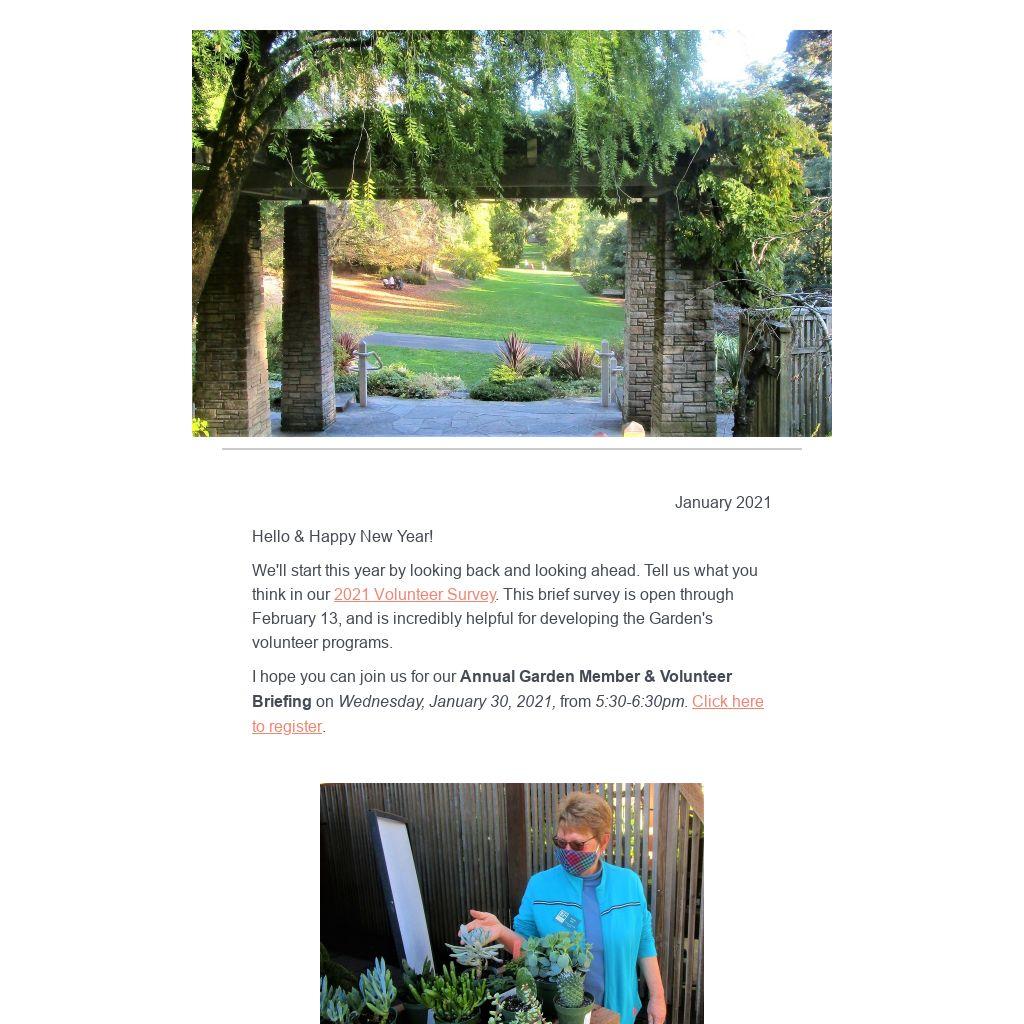 I hope you can join us for our Annual Garden Member & Volunteer Briefing on Wednesday, January 30, 2021, from 5:30-6:30pm. Click here to register.