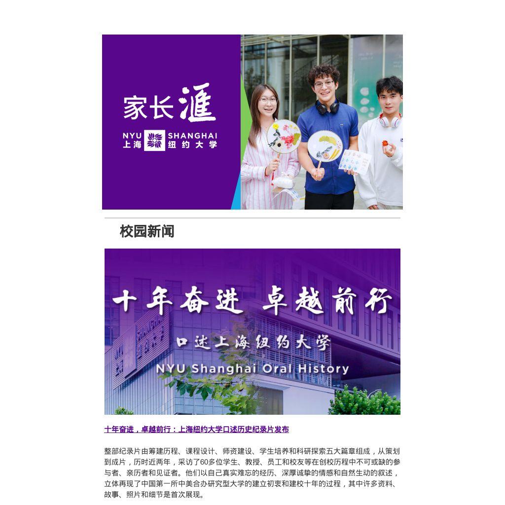 十年奋进,卓越前行:上海纽约大学口述历史纪录片发布