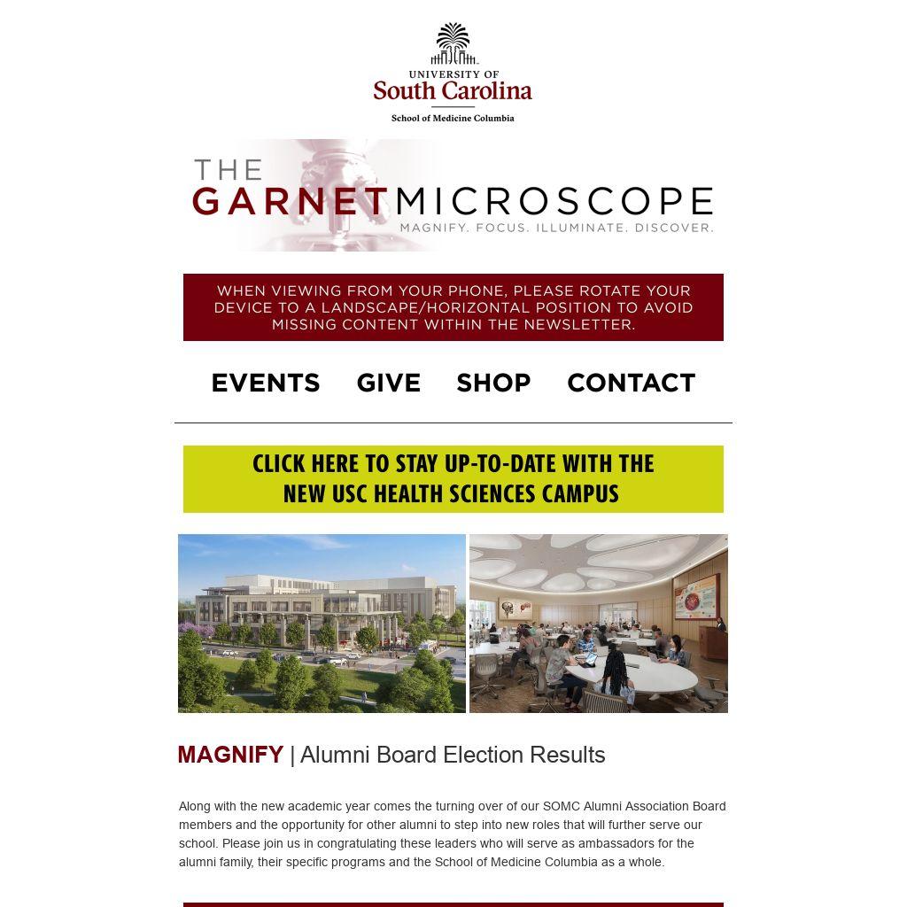 As we look to the exciting future and growth of our new medical school, opportunities for scholarships and initiatives that directly impact our students have never been more important than now. I encourage our alumni family to read The Garnet Microscope each month so we can all stay in the know regarding opportunities that promote support and enable us to remain steadfast ambassadors for our school's mission.