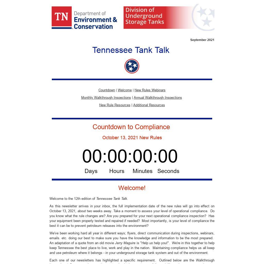 We've been working hard all year in different ways; flyers, direct communication during inspections, webinars, emails. etc. doing our best to make sure you have the knowledge and information to be the most prepared. An adaptation of a quote from an old movie Jerry Maguire is "Help us help you!". We're in this together to help keep Tennessee the best place to live, work and play in the nation. Maintaining compliance helps us all keep and use petroleum where it belongs - in your underground storage tank system and out of the environment.