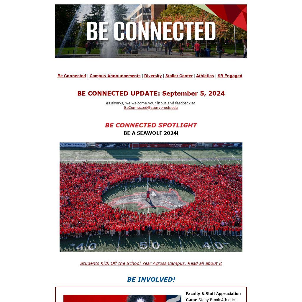 Faculty & Staff Appreciation Game Stony Brook Athletics would like to invite all Stony Brook University faculty and staff to our football home opener on Saturday, September 7 vs. Stonehill at 3:30 p.m. Claim your ticket. Questions? Call 631-632-WOLF or email us.