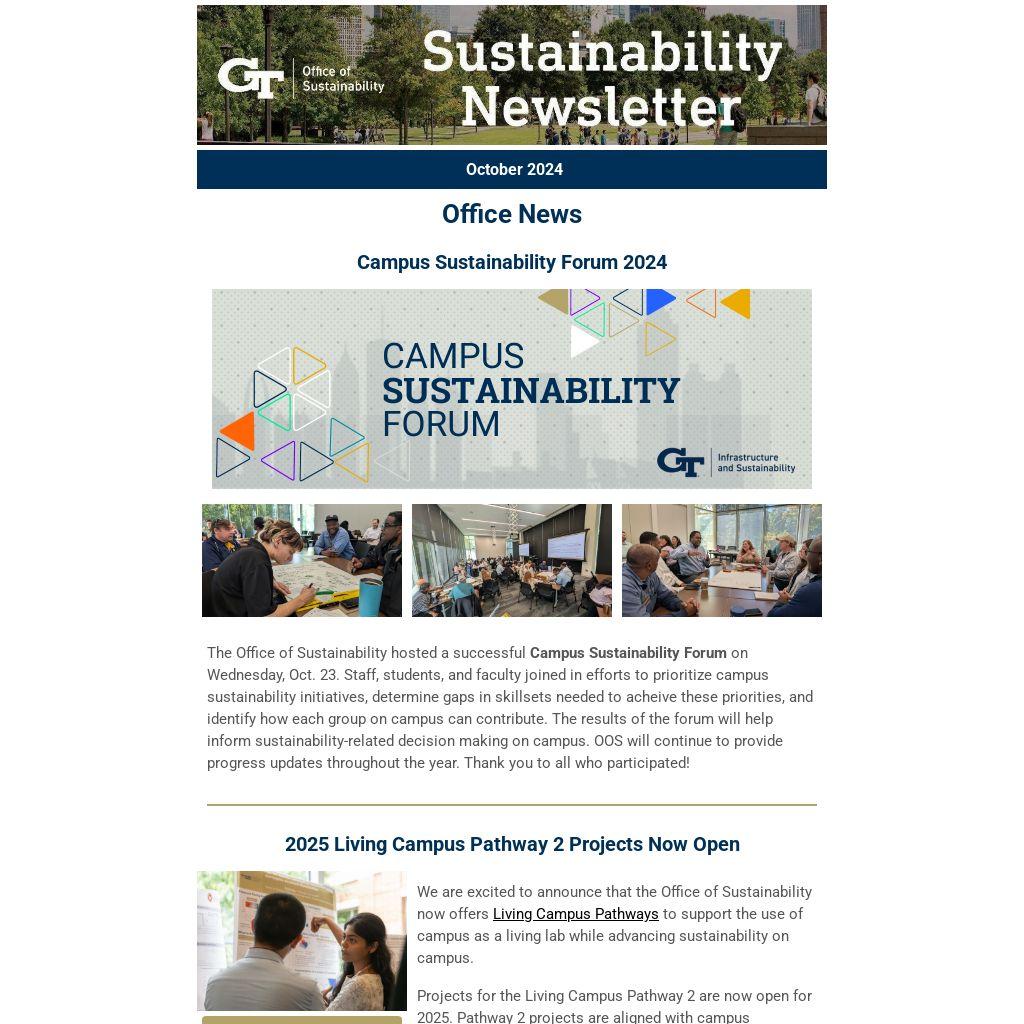 Is your Georgia Tech organization's newsletter missing? Email us at sustain@gatech.edu to be added to our list.