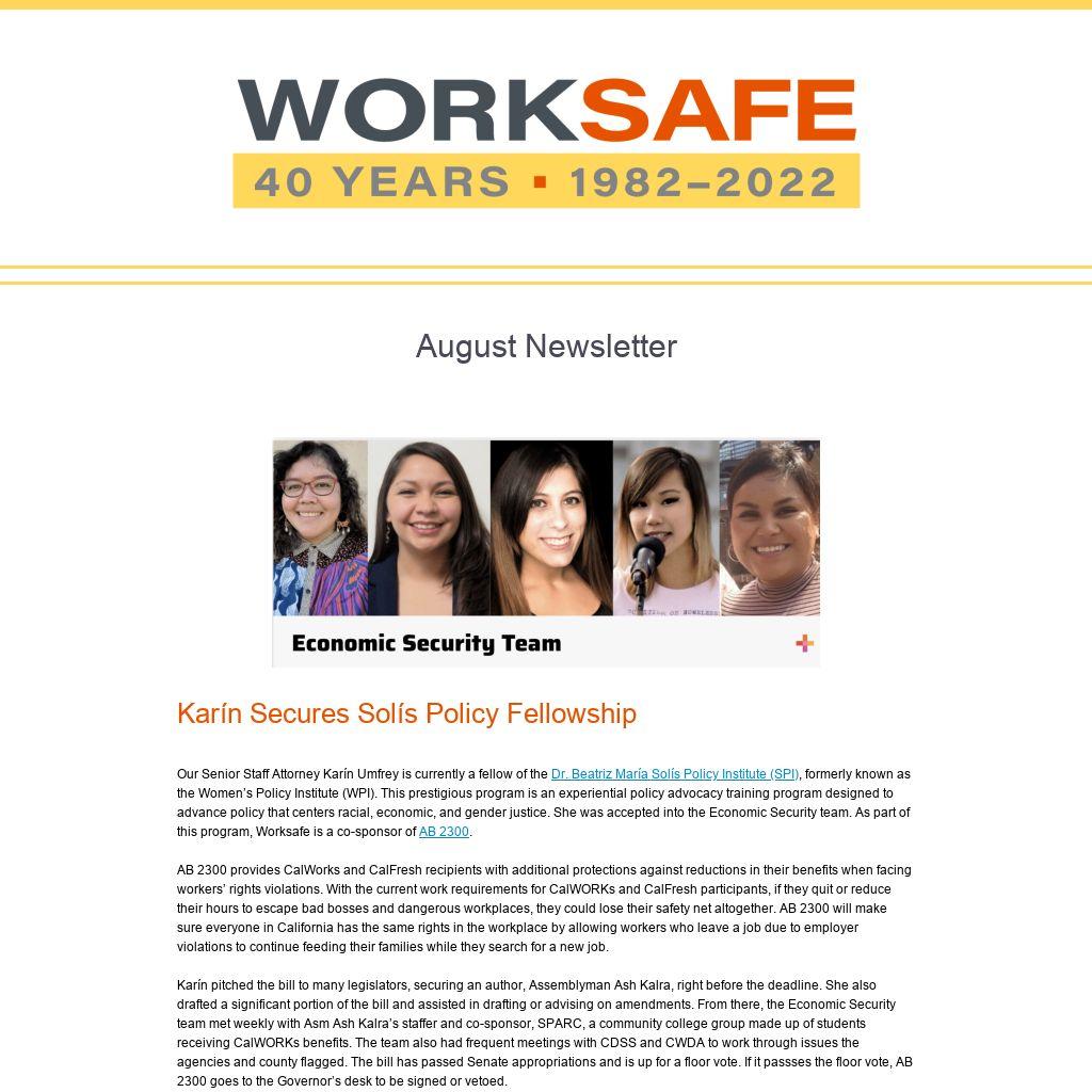 Our close involvement in legislation to protect CalWorks and CalFresh benefits for those facing workers’ rights violations (AB2300) is described in Karín’s update elsewhere in this newsletter. And there are other strong proposals pending final approval, including: