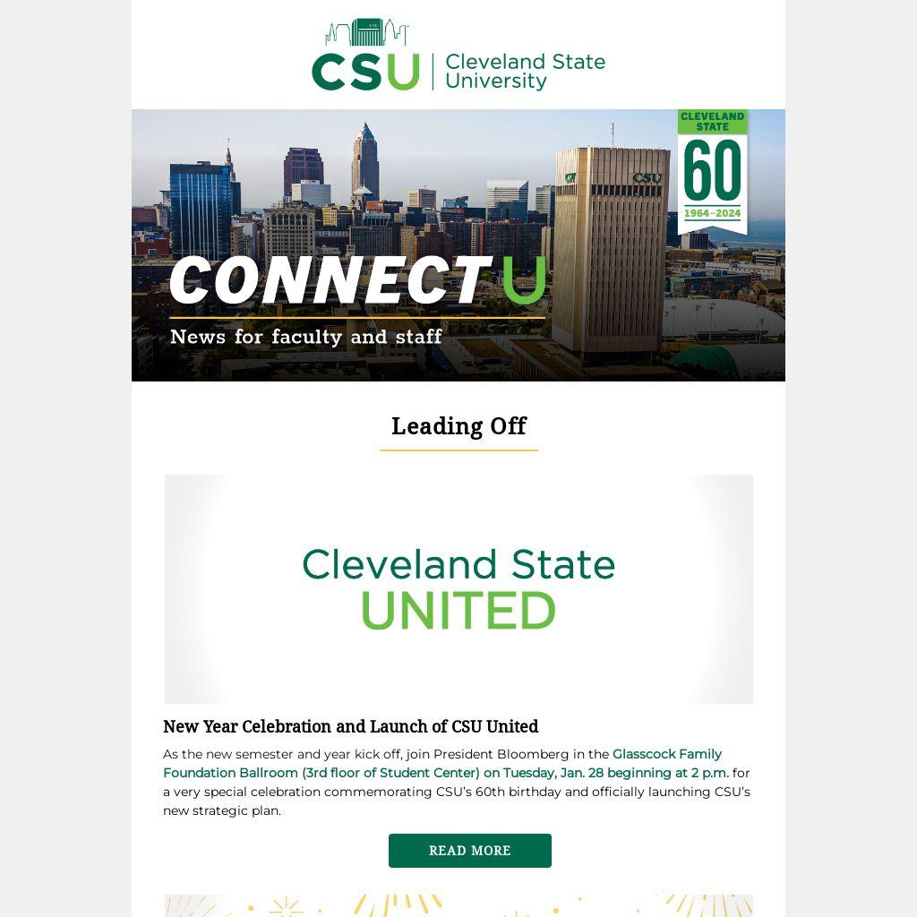 As the new semester and year kick off, join President Bloomberg in the Glasscock Family Foundation Ballroom (3rd floor of Student Center) on Tuesday, Jan. 28 beginning at 2 p.m. for a very special celebration commemorating CSU’s 60th birthday and officially launching CSU’s new strategic plan.