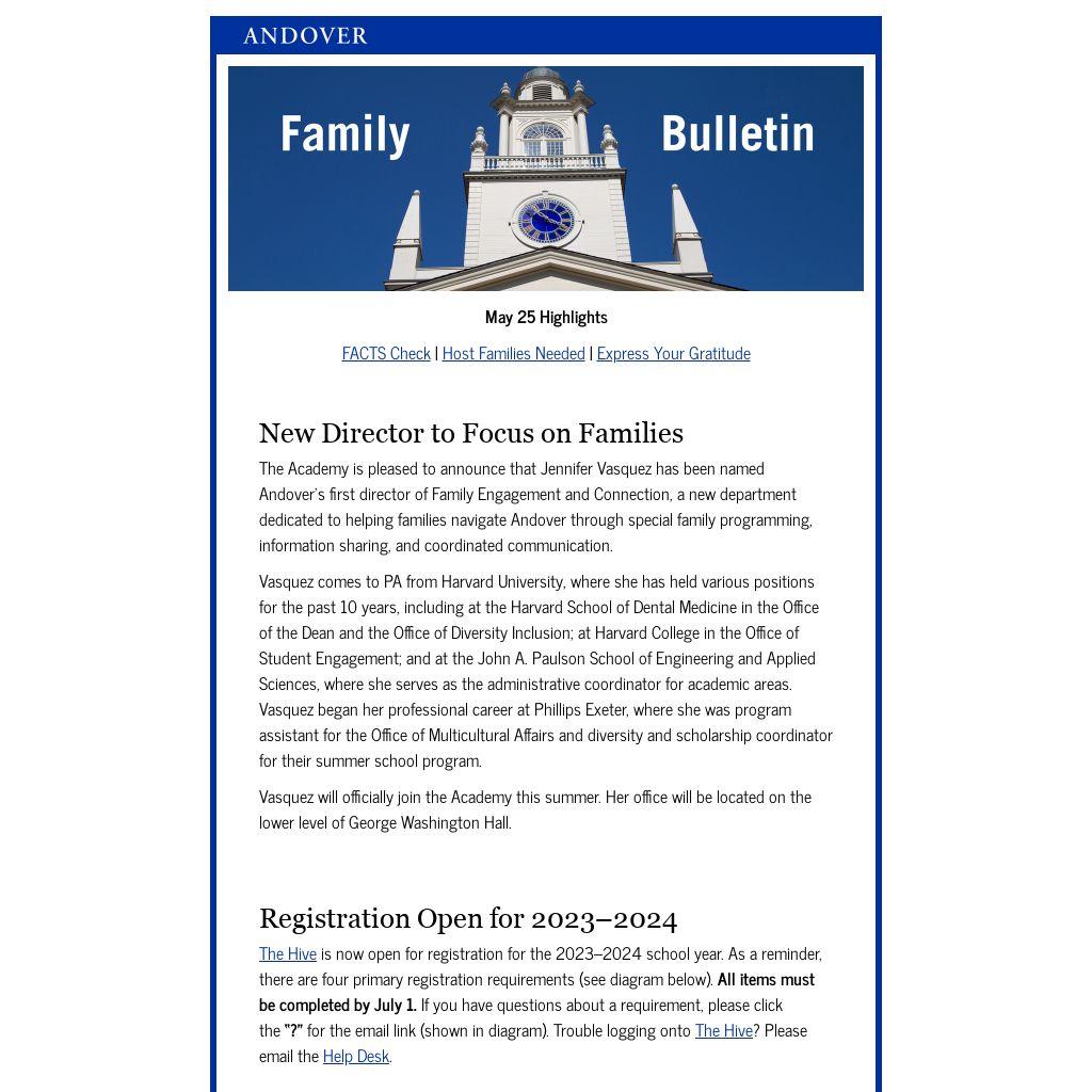 | This is the final Family Bulletin of the 2022–2023 academic year. Have a wonderful summer!