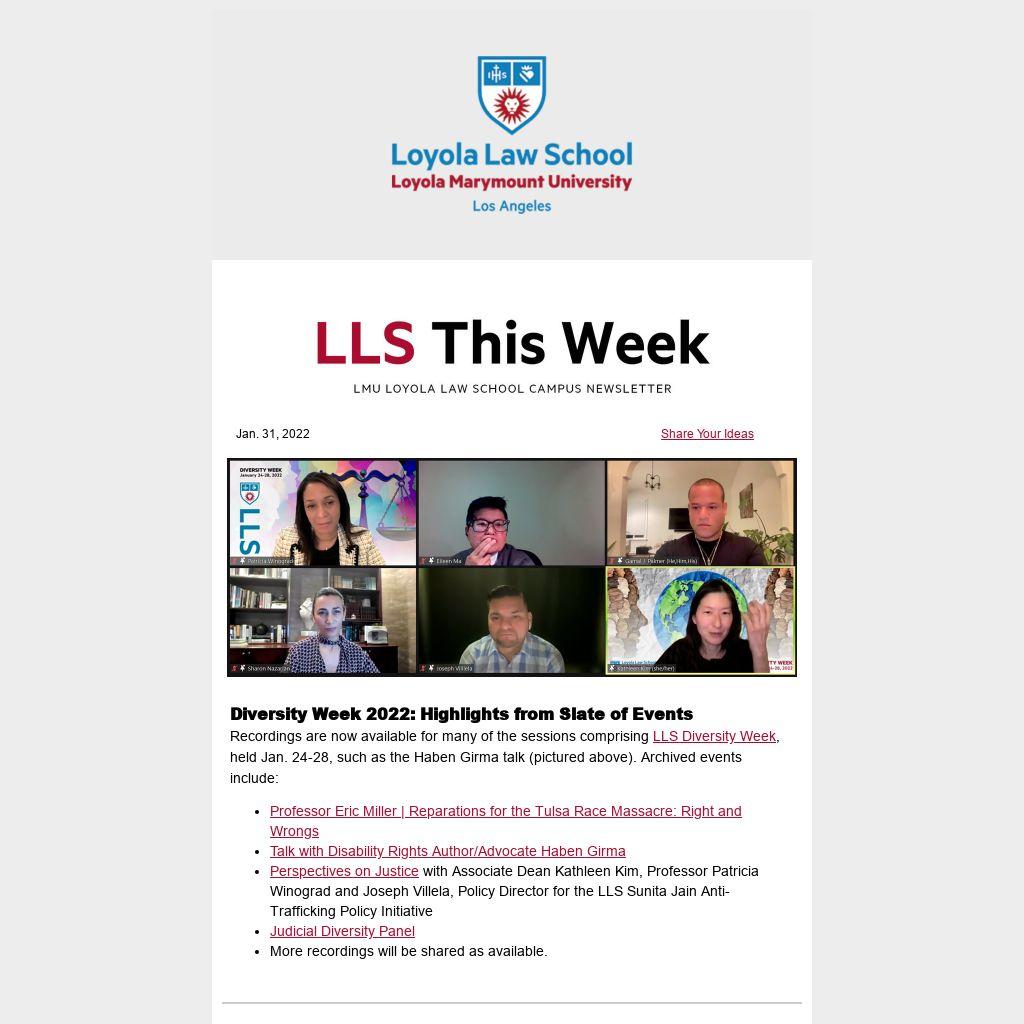 Event coordinators are encouraged to use the LLS Events Calendar for events they want promoted broadly. Note: You must select "Loyola Law School" in the department field in order for the event to display in the LLS roundup. Questions? Email us!